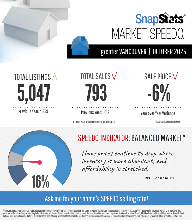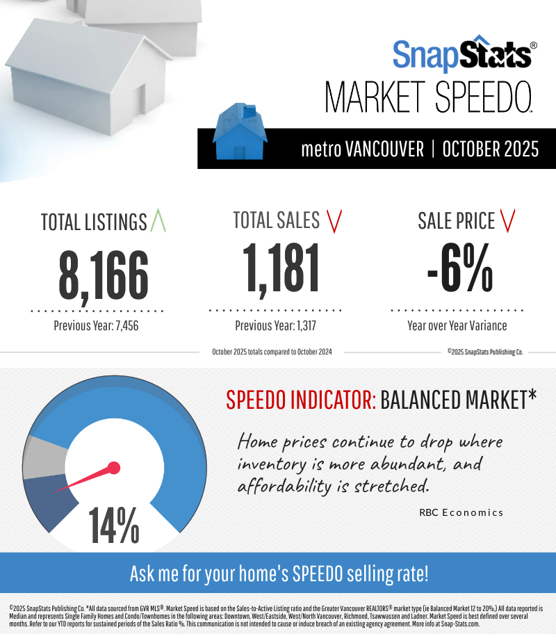 October 2025 brought a quieter pace to the Metro Vancouver housing market — a natural seasonal slowdown that has created the most balanced conditions we’ve seen all year.
